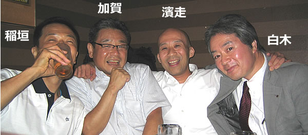 画像はその時カラオケ店で撮影したもので、左から稲垣君、加賀君、濱走君、小生です。