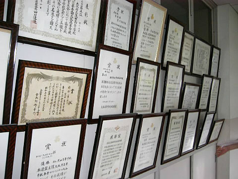 当時、盛んだったスポーツクラブの功績を称えるトロフィーや表彰状が、
